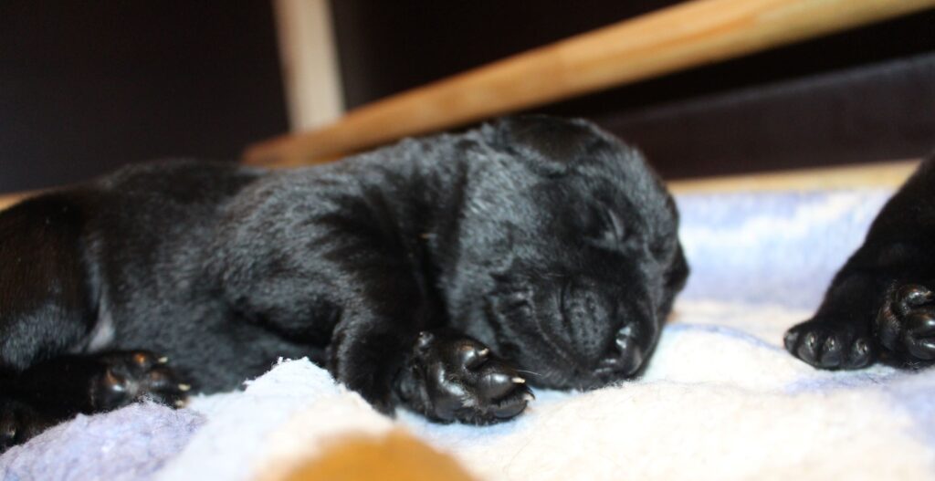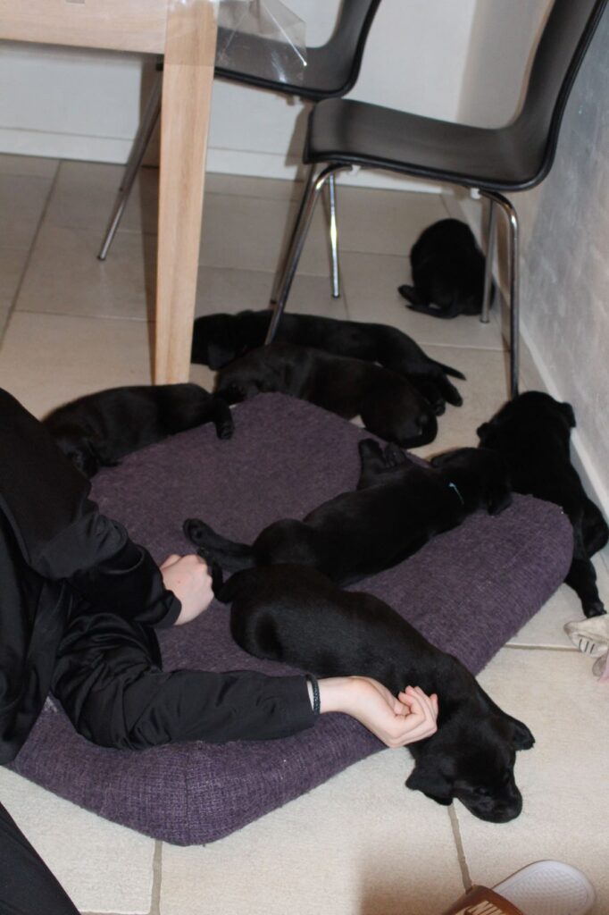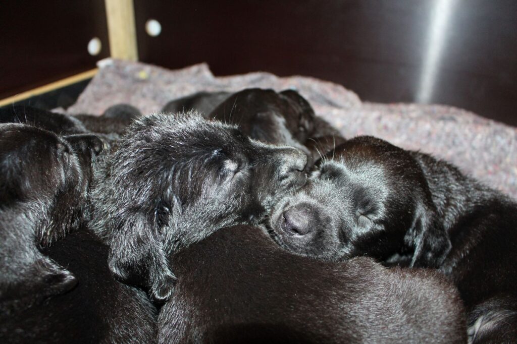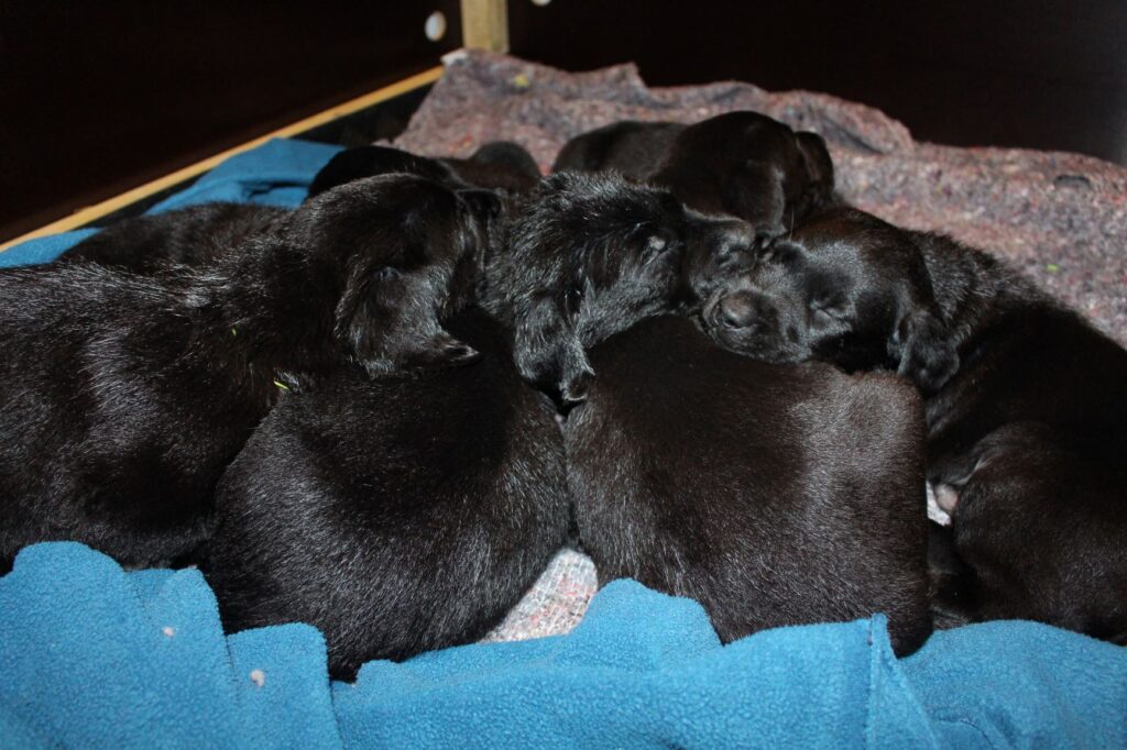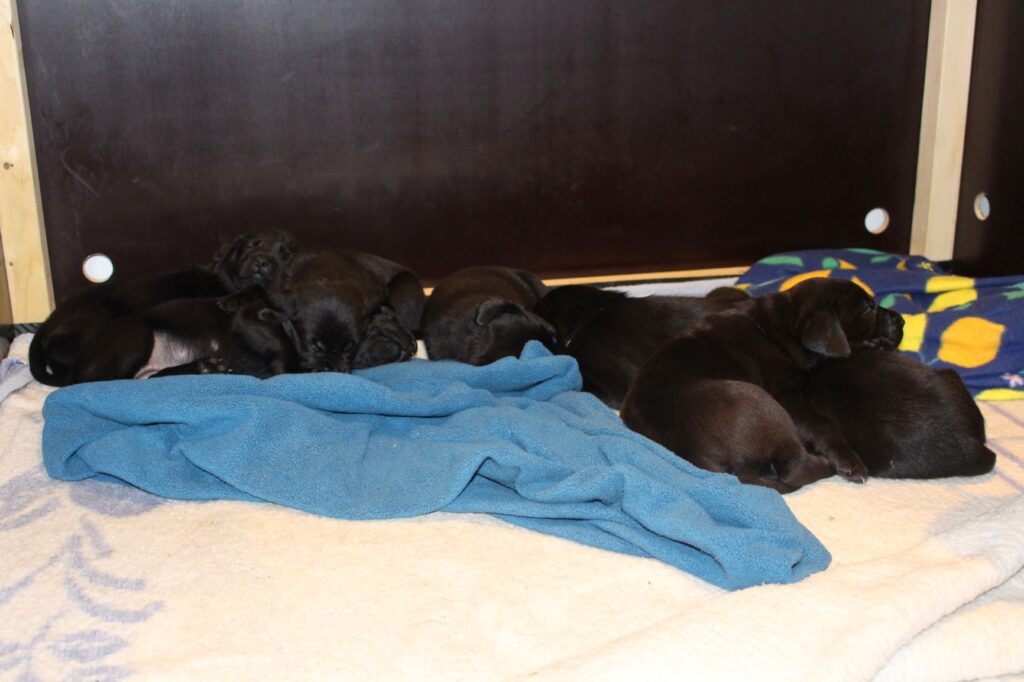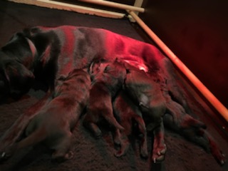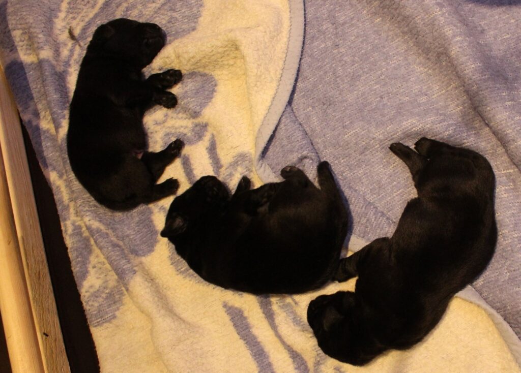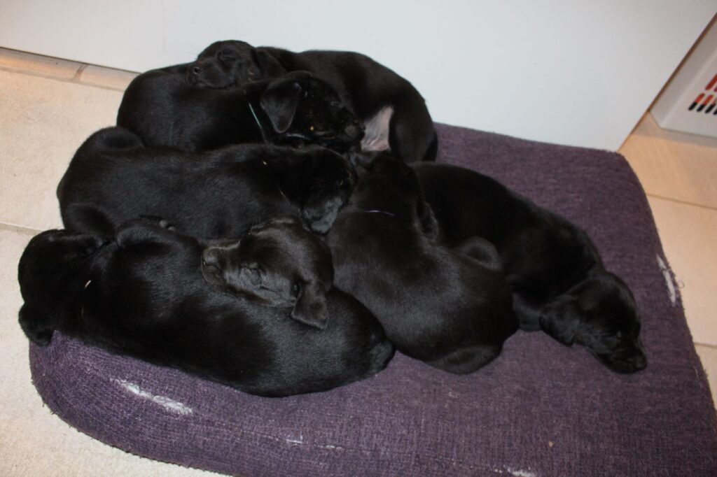 Søndag den 23. februar fik Clay 7 sorte hvalpe – 5 tæver og 2 hanner