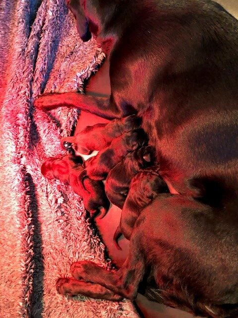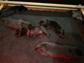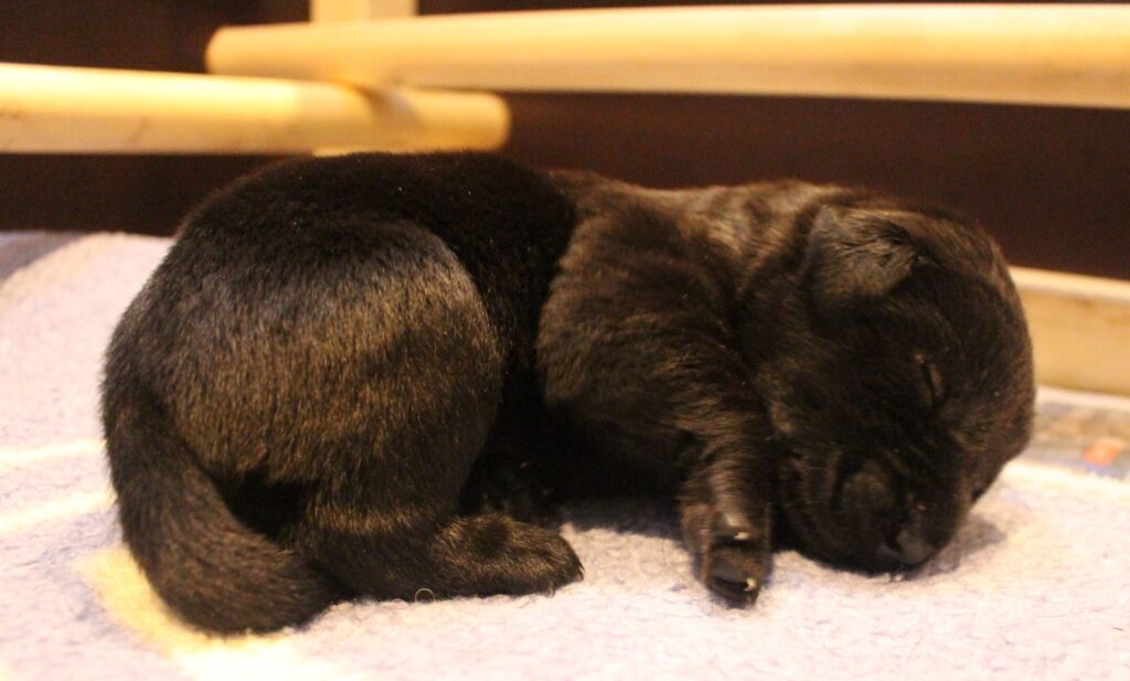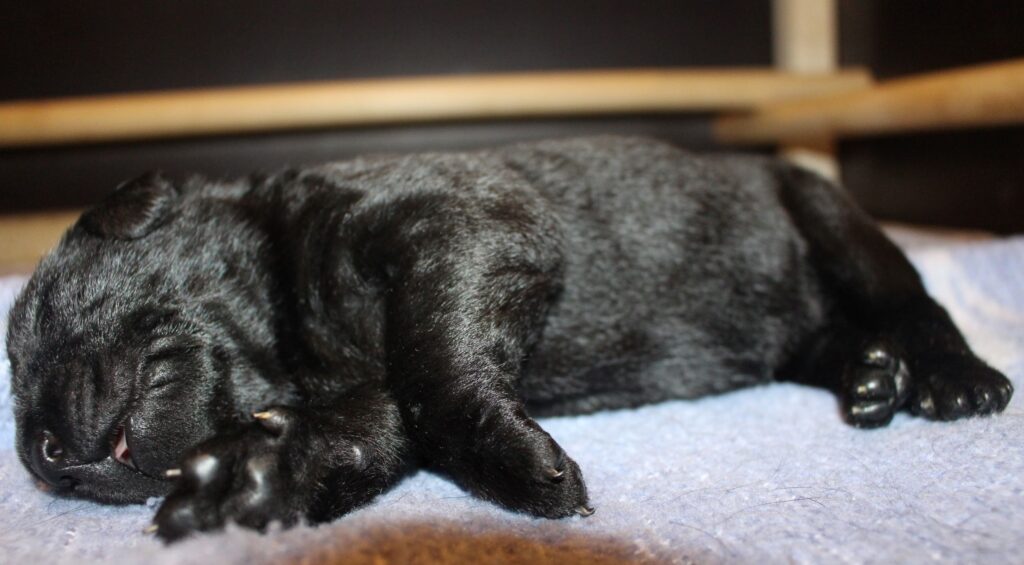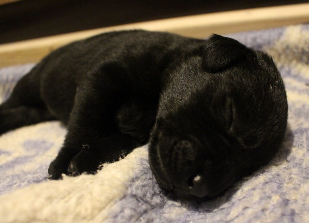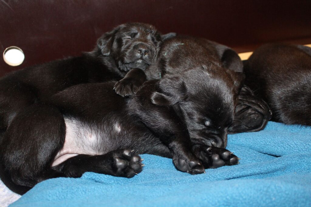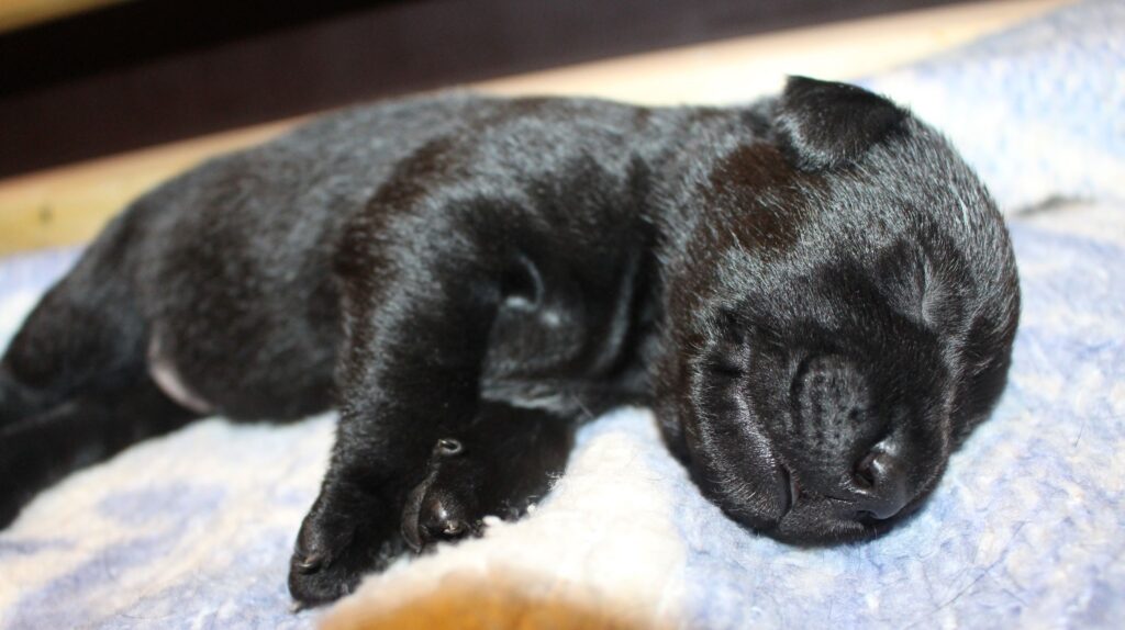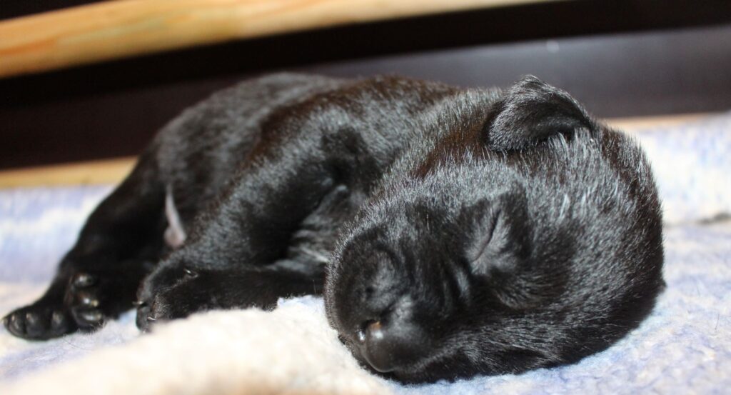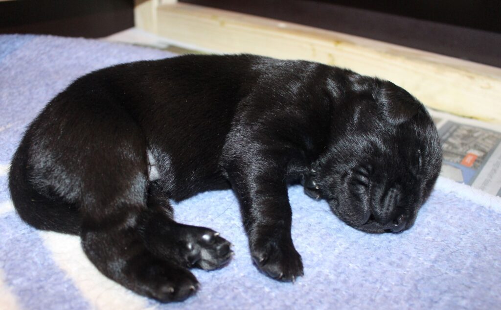 Søndag den 23. februar fik Clay 7 sorte hvalpe – 5 tæver og 2 hanner